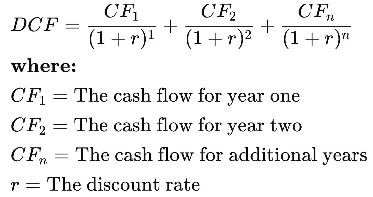Discounted Cash Flow (DCF) analysis is a method of valuing cash flow that analyzes future value as if it existed today. Let’s walk through the formula: