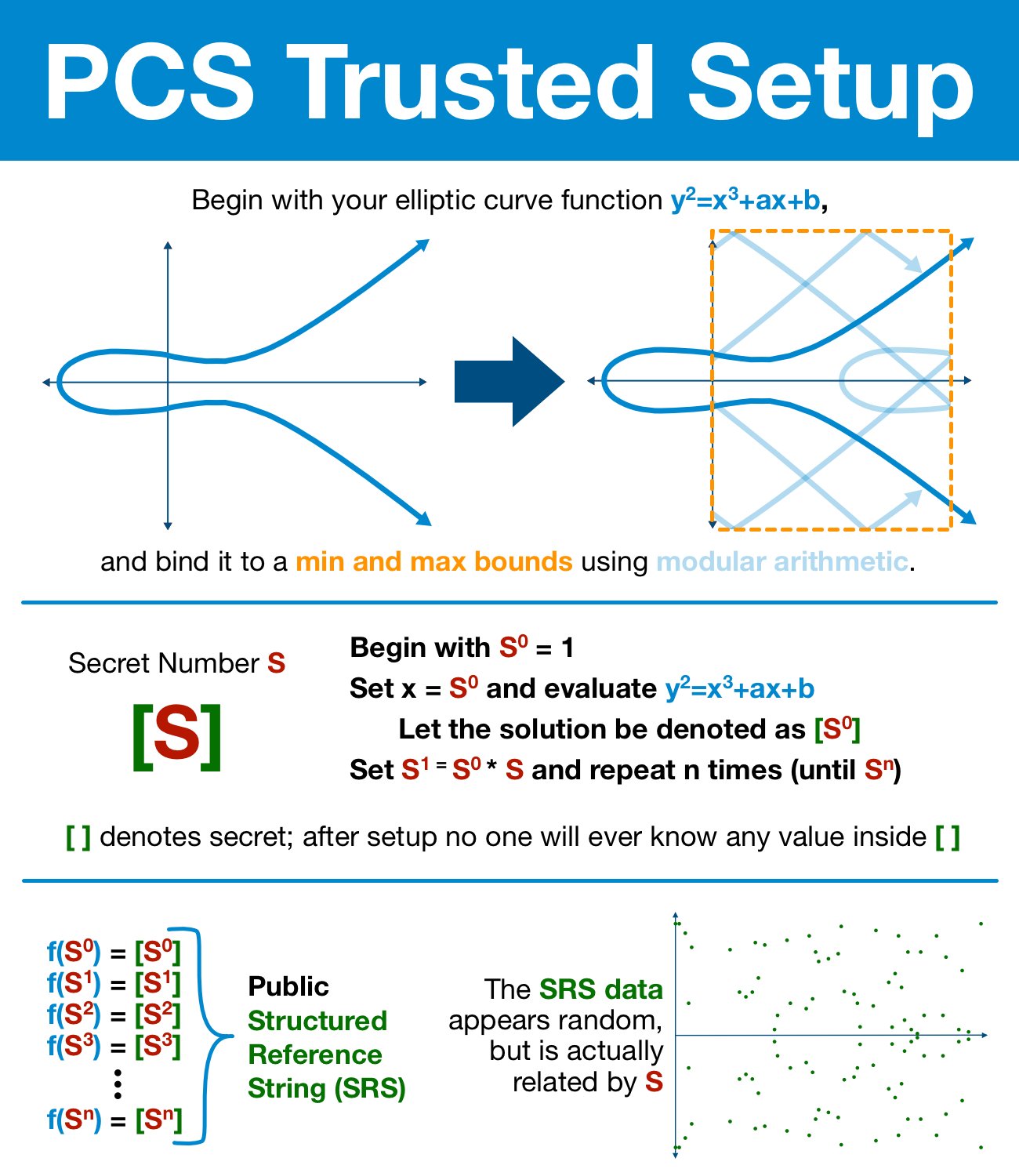 The result of the trusted setup is a Structured Reference String (SRS). The SRS conveys enough information that the random number is accessible for our polynomial (and therefore our polynomial commitment scheme) while still keeping the value entirely secret.