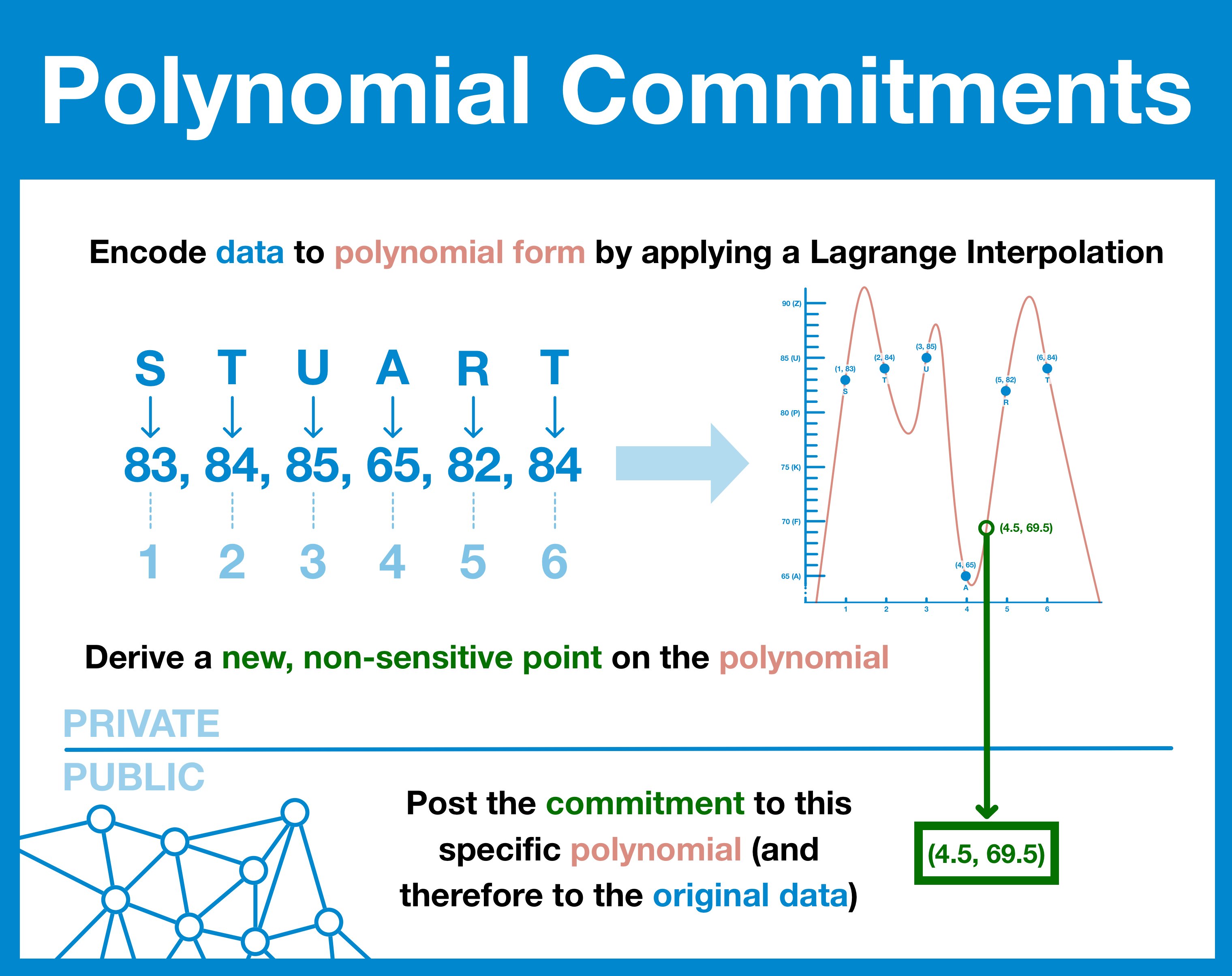 The commitment will serve as an anchor, tying the prover to the original dataset. Any changes to the underlying data will result in a new polynomial and therefore a new commitment.