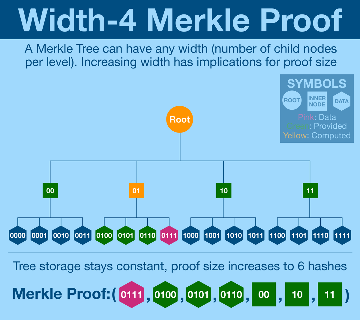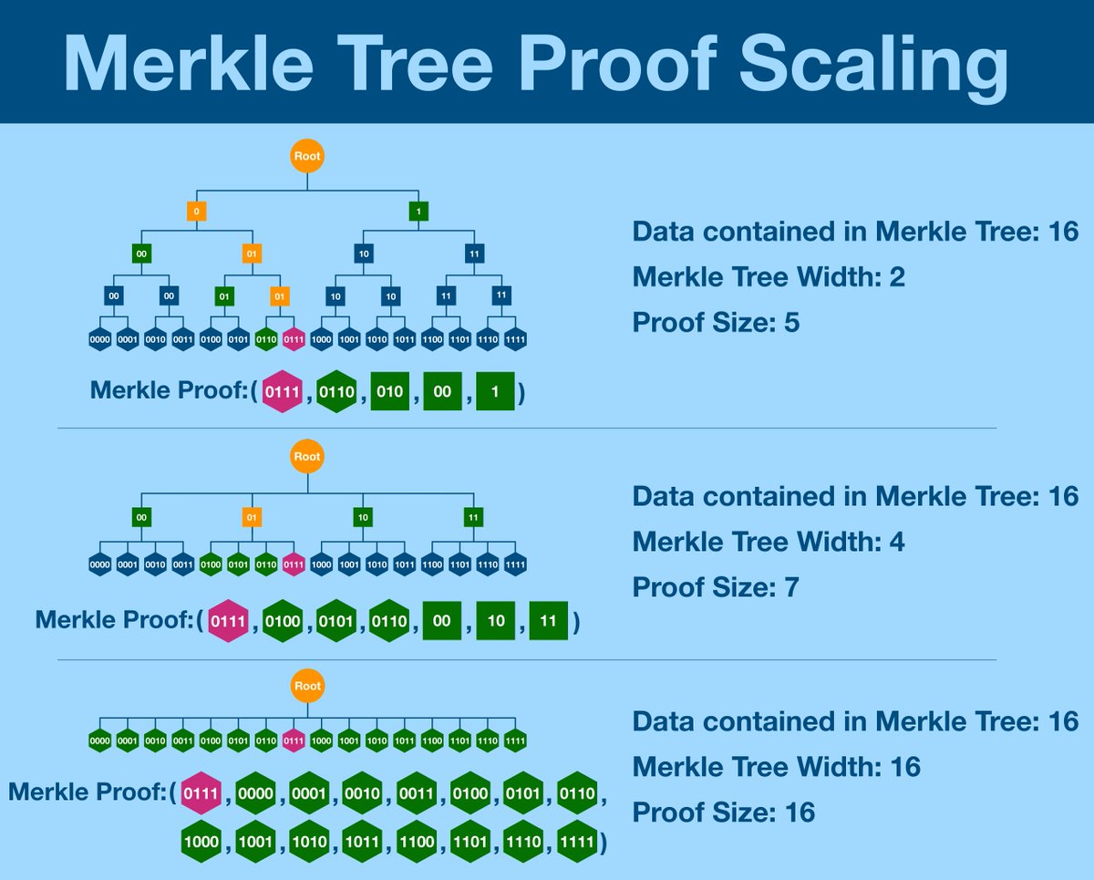 The wider a Merkle Tree gets, the less efficient the Merkle proofs are.
