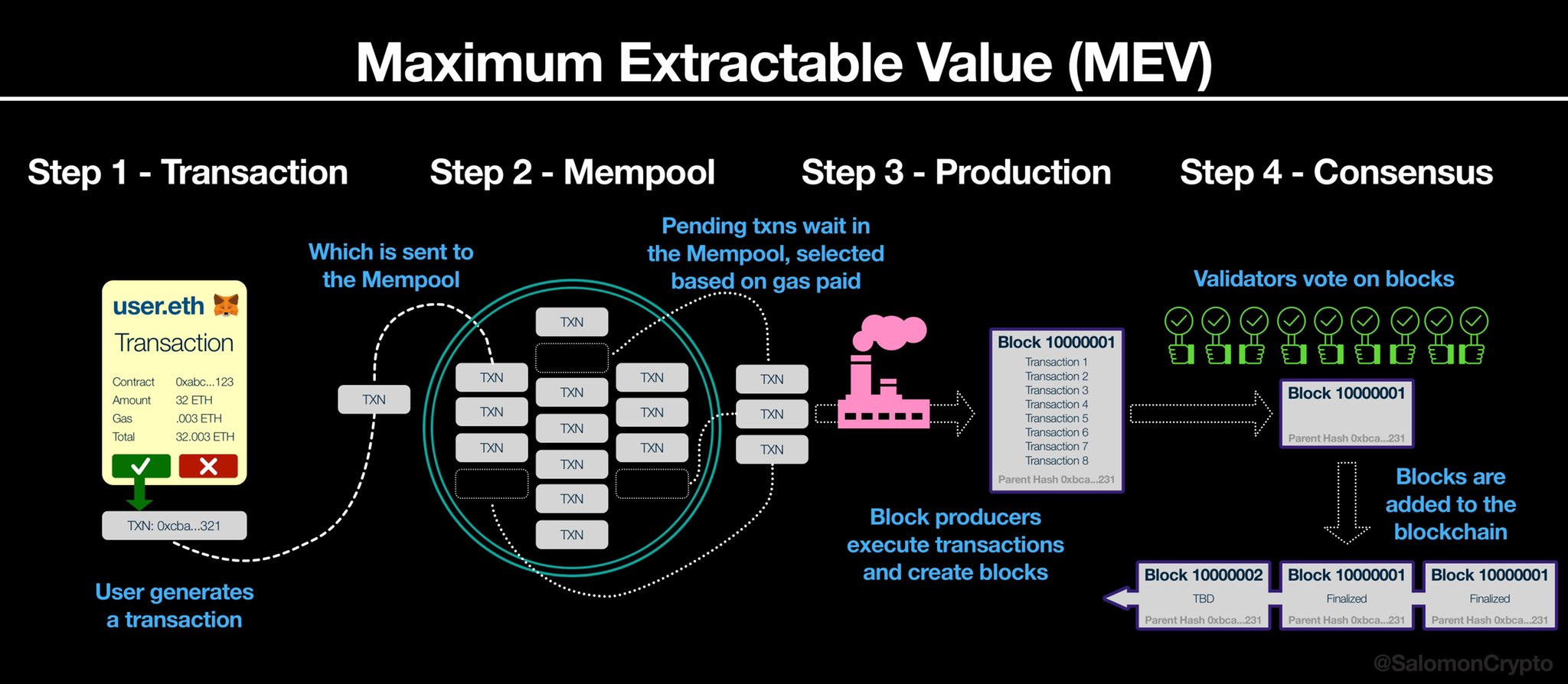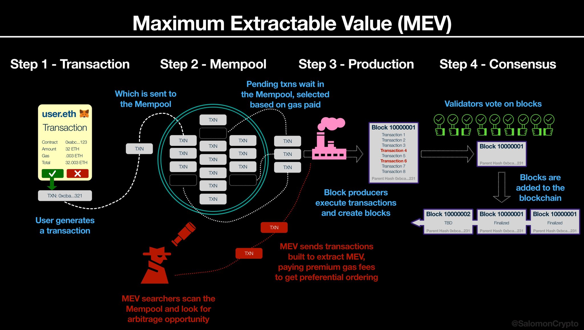 The classic and most common example of MEV comes from the execution process of blockchain transactions.
