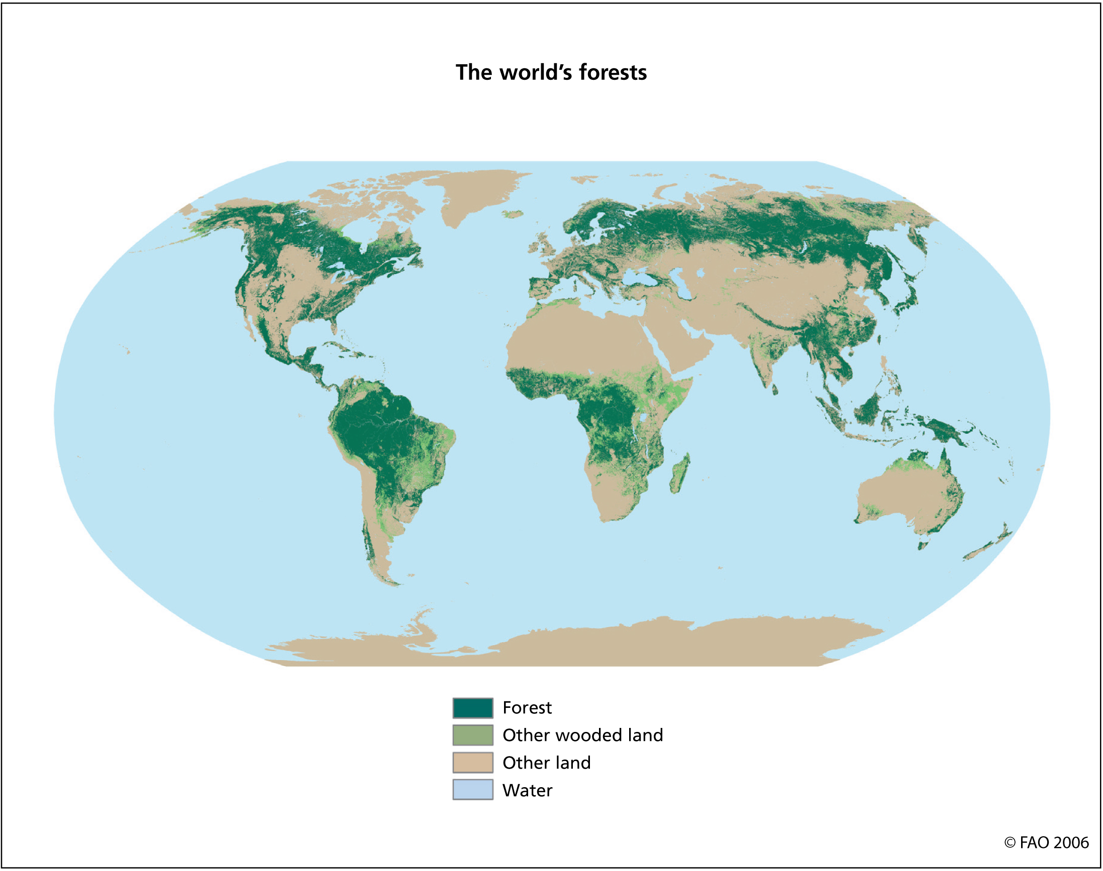 Turns out the earth's trees also follow a power law distribution: although close to one third of the planet is covered by forest, more than half (54%) of the world's forests are found in 5 countries.