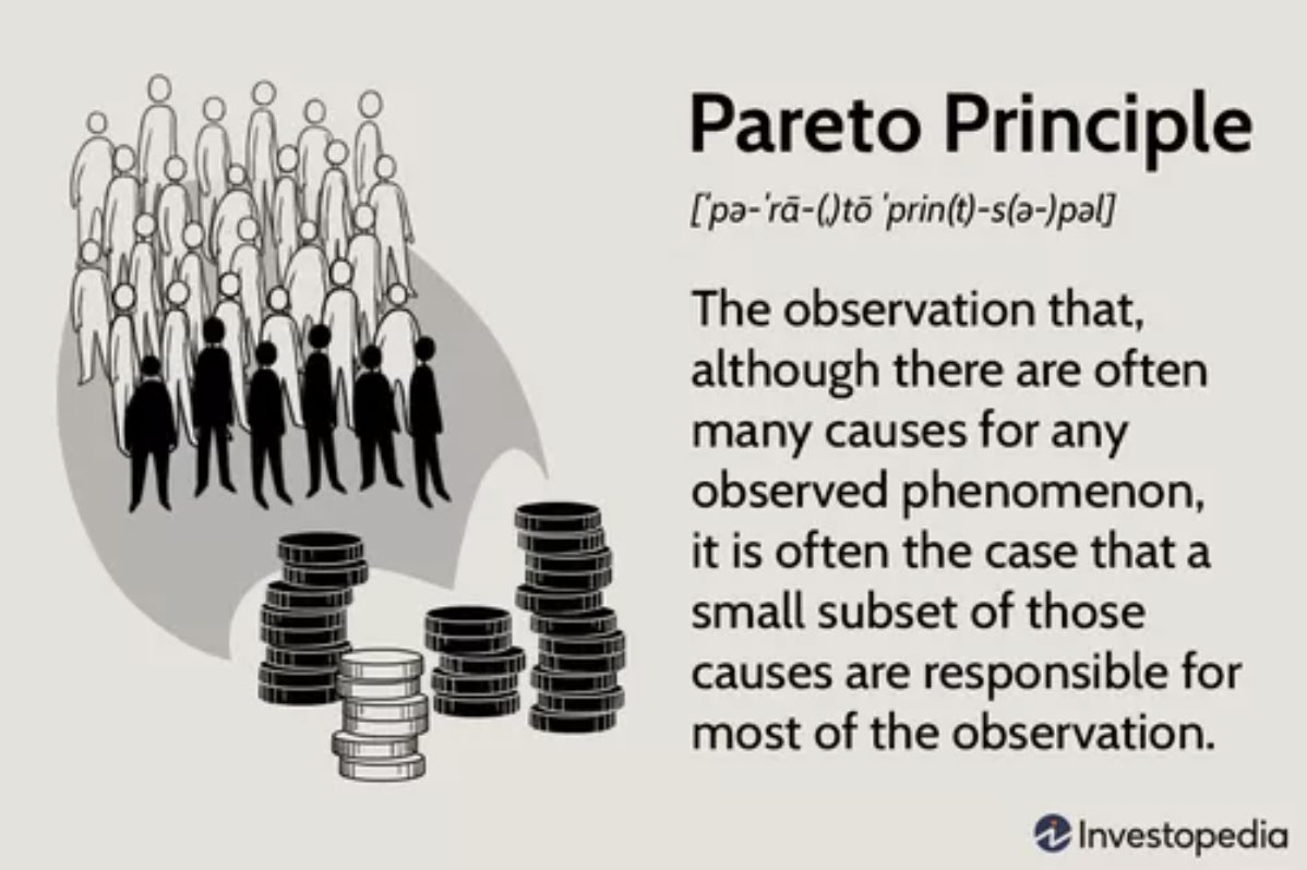 In fact, this phenomena is so prevalent and important that economist have built a whole branch of study around it. But we'll just sum it up with the Pareto Principle: For many outcomes, roughly 80% of consequences come from 20% of causes.