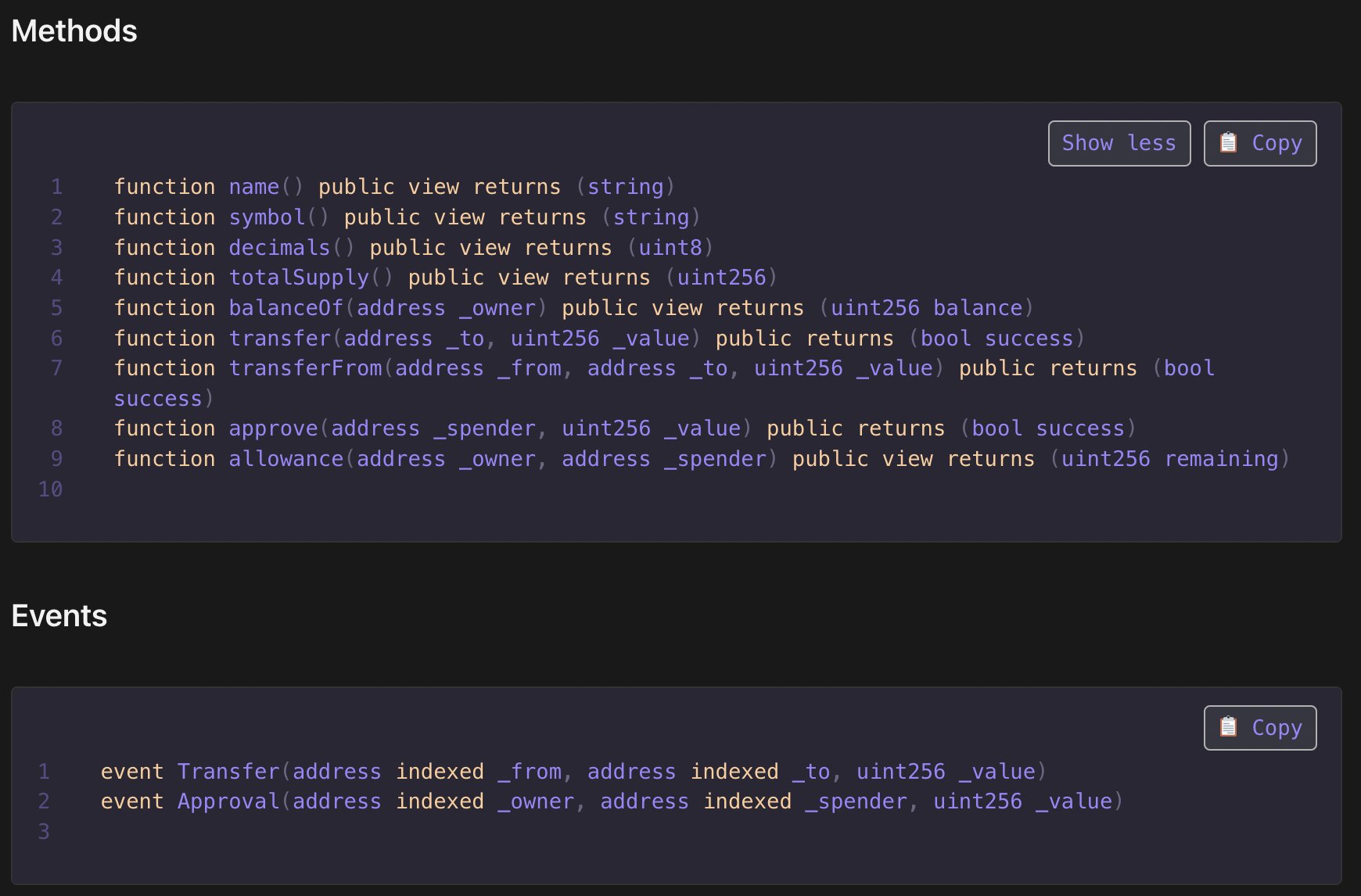 In order to create an ERC-20, a developer has to create code to be executed for all of these methods and events