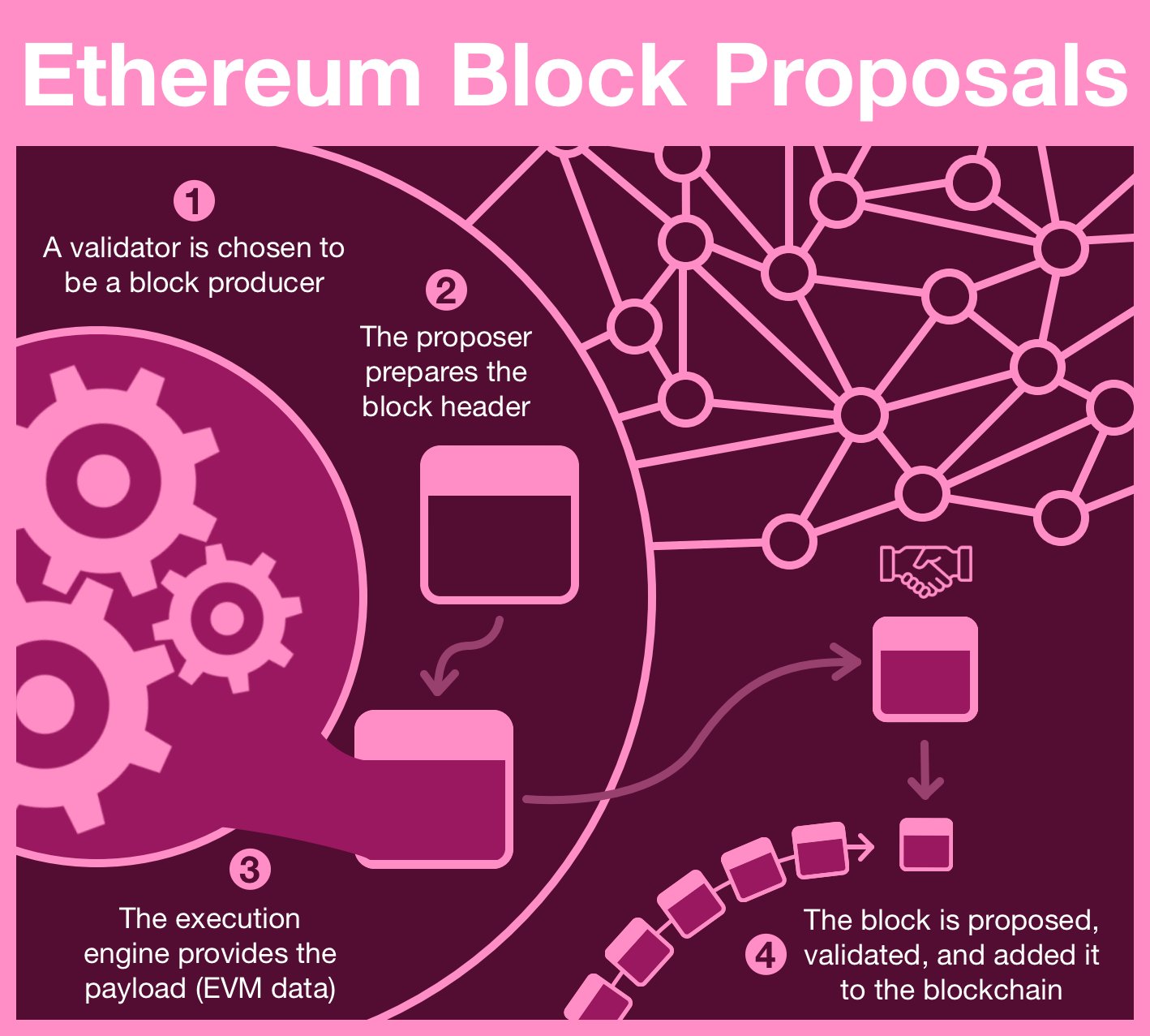 Finally, the proposer finishes preparing the block and broadcasts it to the network.