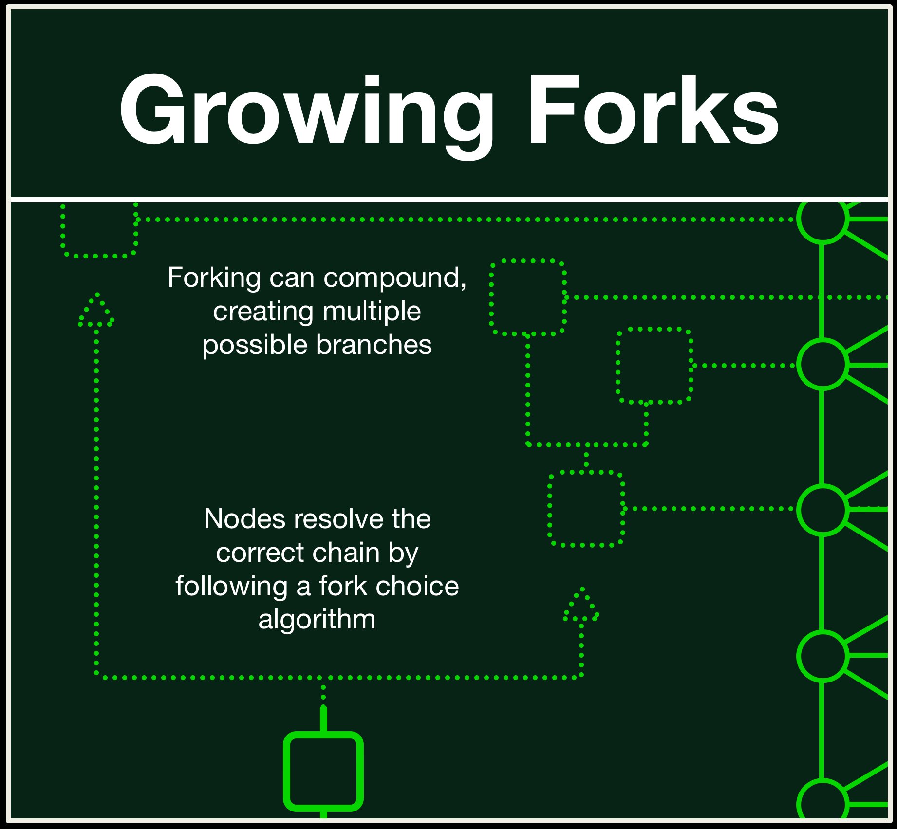 A choice is called a fork, and a fork can grow. If the network falls out of sync, it might fall out of sync for more than one slot.