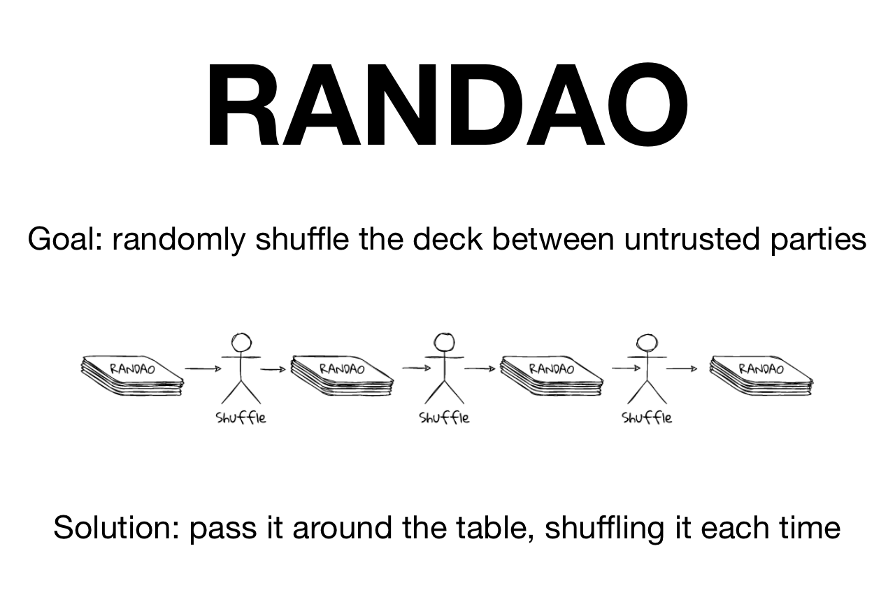Each time a new block is created, RANDAO is updated with just a little more randomness. And so, through the trustless contribution of every proposing validator, we generate a sufficiently random value.