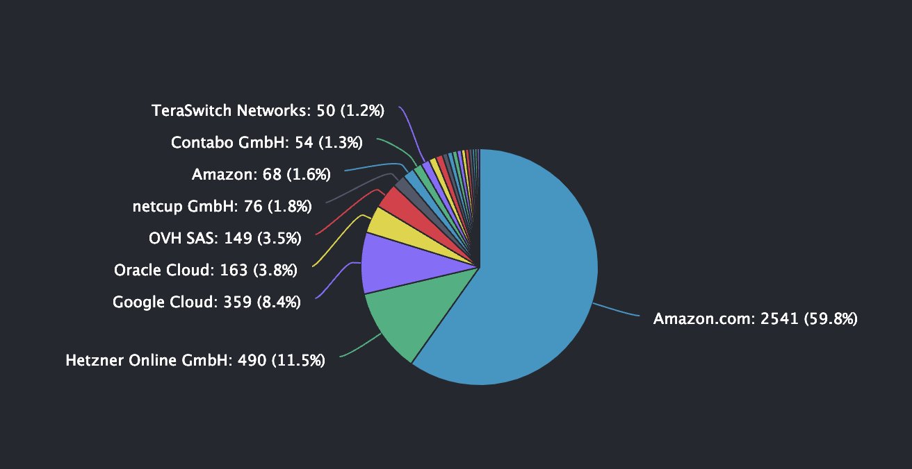 If you want to be specific, you need to look at cloud providers. More than 25% of nodes run on AWS, which makes decentralization more complicated.