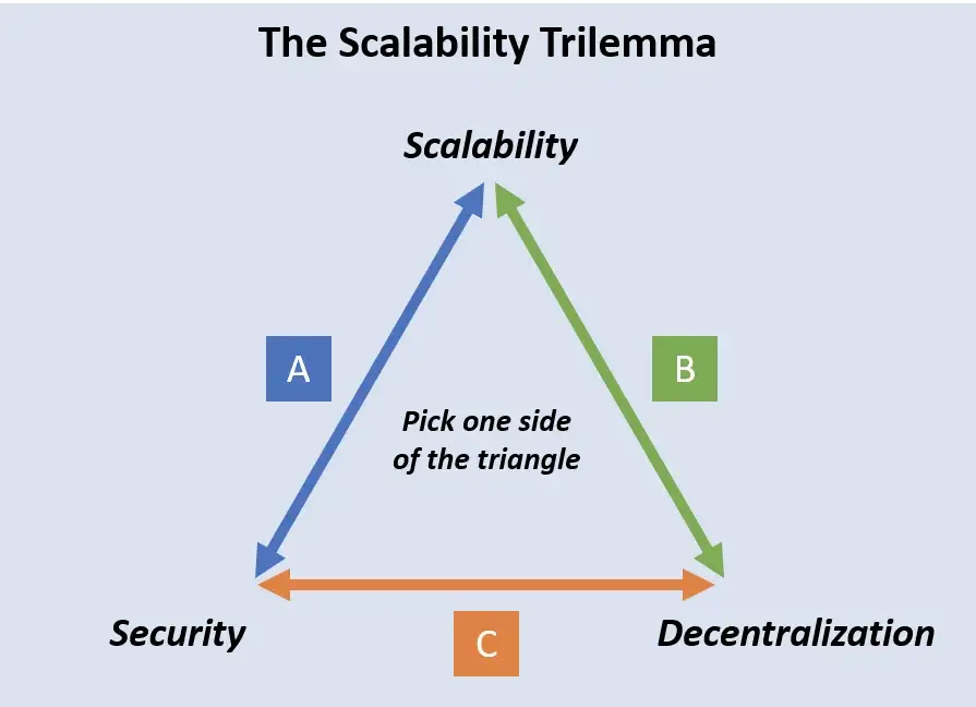 Summarized by the Scalability Paradox, it is (seemingly) impossible to remain decentralized, secure and scalable; optimizing for one compromises the other two.
