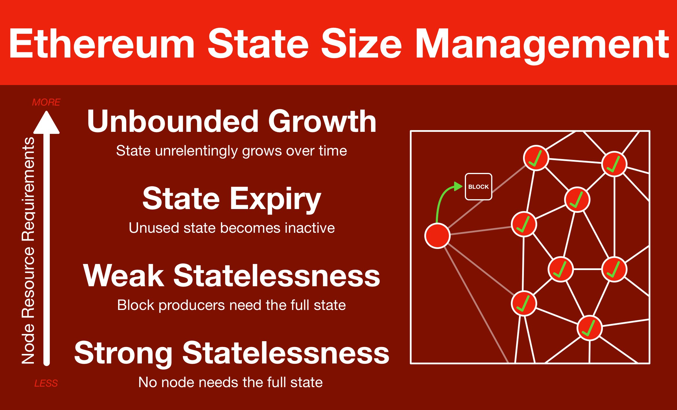 Today, the World Computer stores the entire state of the EVM; every account, every entry, all the way back to genesis. For now, that amount of data is acceptable, but without intervention the state's size will grow to infinity.