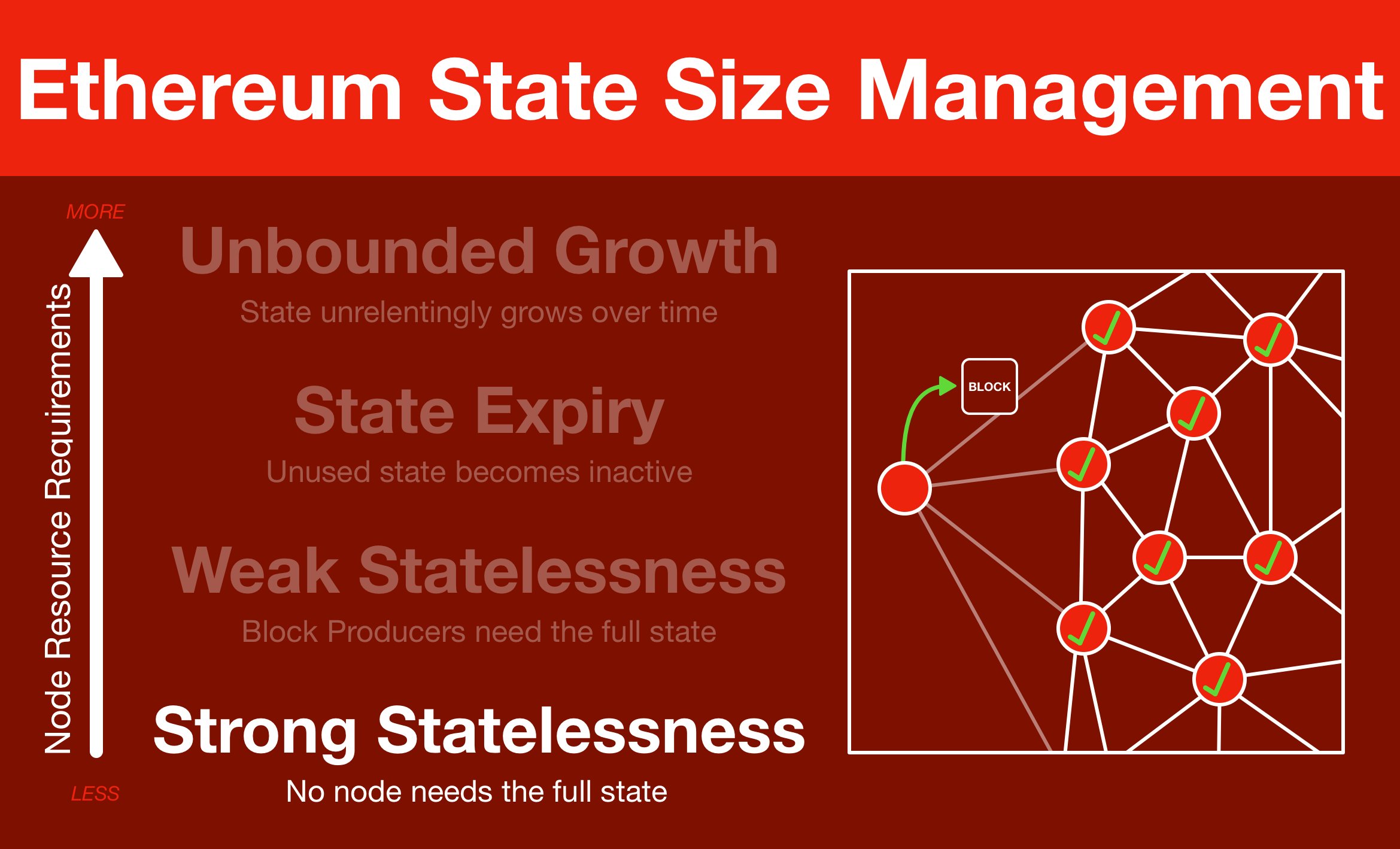 At the end of the spectrum is Strong Statelessness, the idea that no node (or block producer) needs to hold the state.